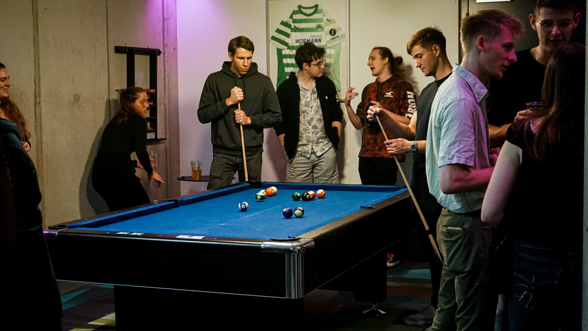Ob an der Bar, auf der Tanzfläche, beim Billard oder draußen unter freiem Himmel – die Semesterstartparty 2025 bot alles, was eine gute Feier braucht: großartige Musik, herzliche Stimmung, Spiel, Spaß und viele neue Begegnungen.
