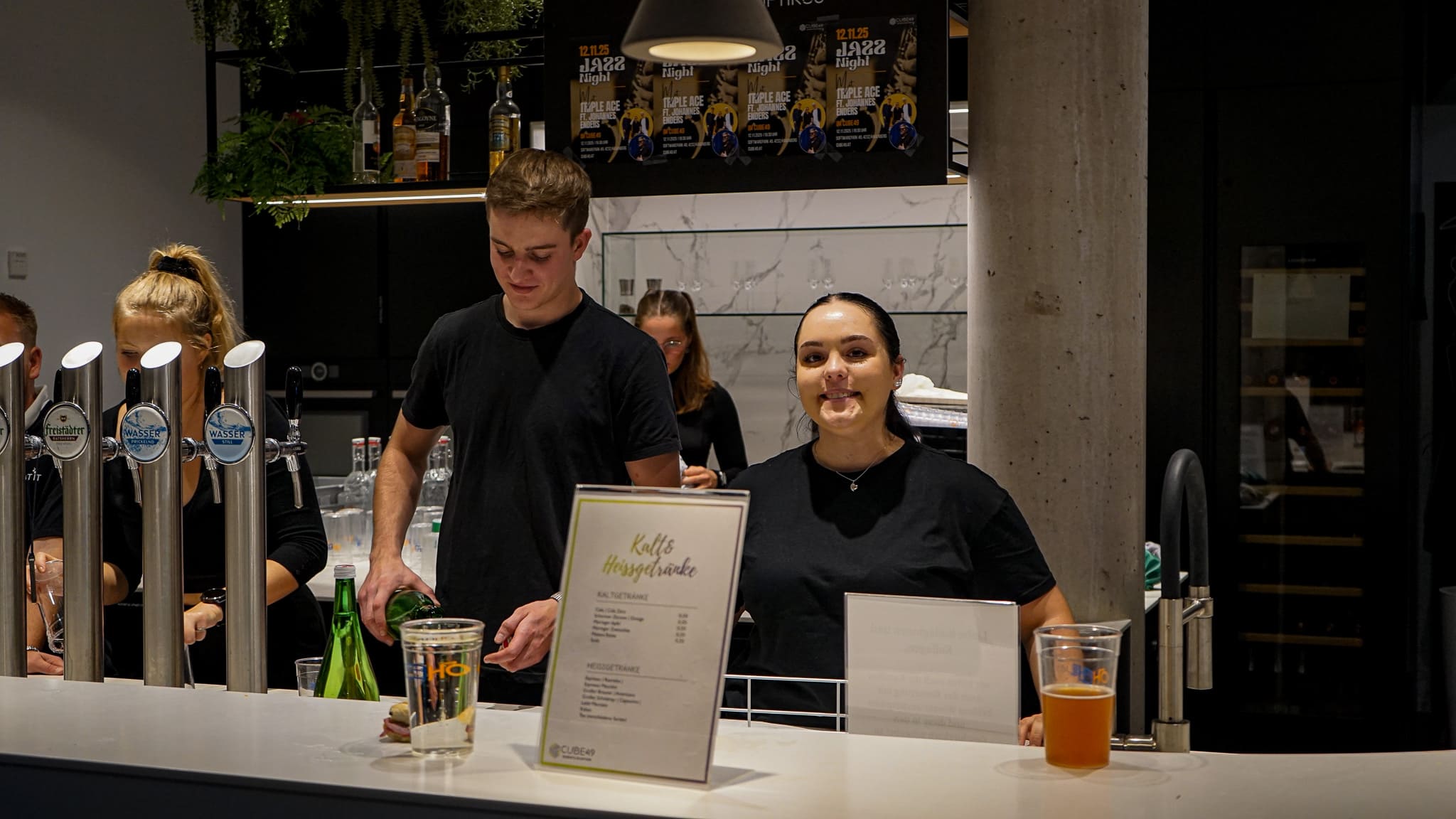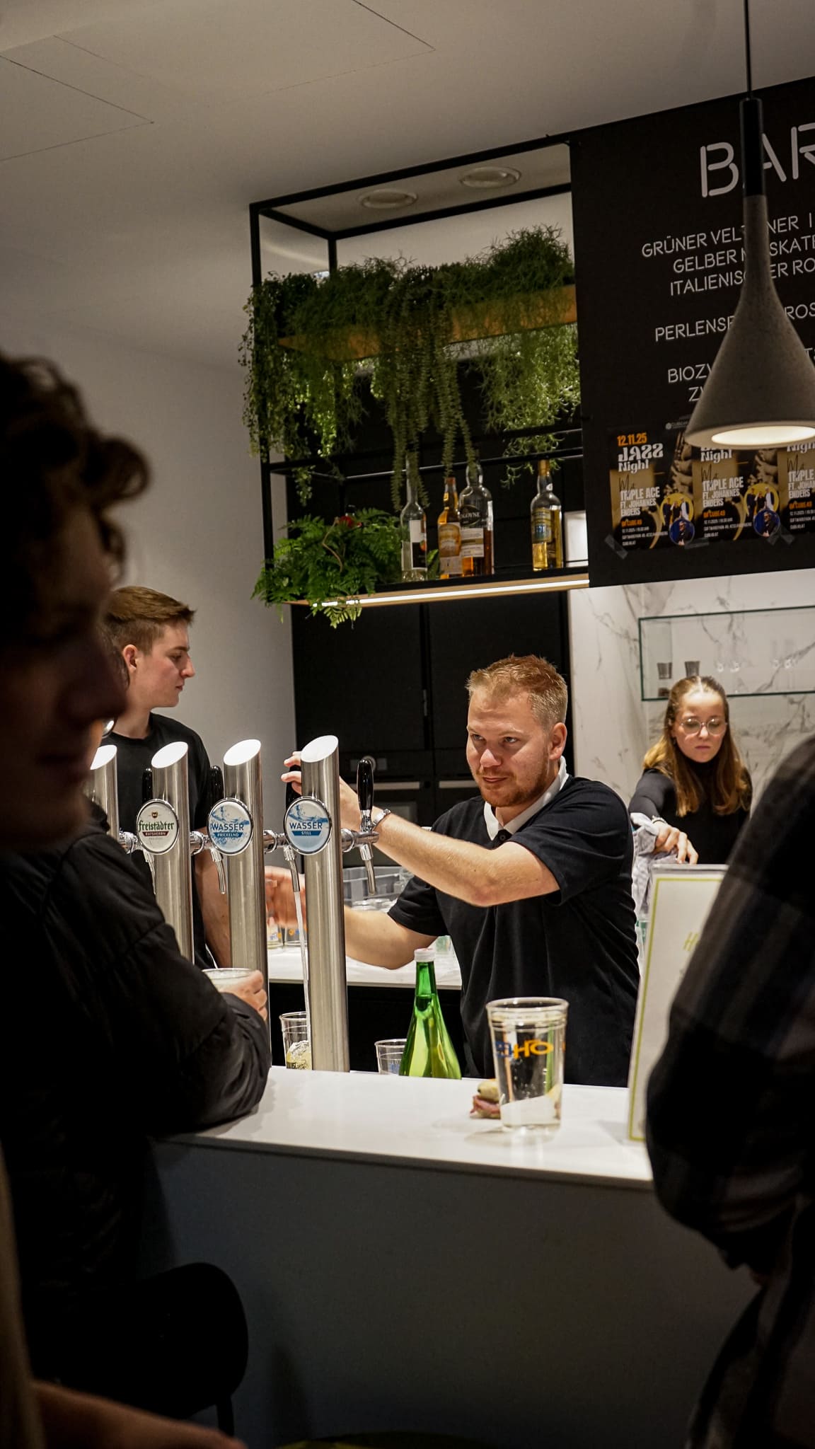 Natürlich durfte auch das leibliche Wohl nicht zu kurz kommen: Eine Auswahl an kostenlosen Getränken und leckeren Snacks sorgte dafür, dass niemand durstig oder hungrig blieb. Ob kühle Erfrischung an zwei Bars oder eine kleine Stärkung zwischendurch – die Studierenden wurden rundum bestens versorgt.